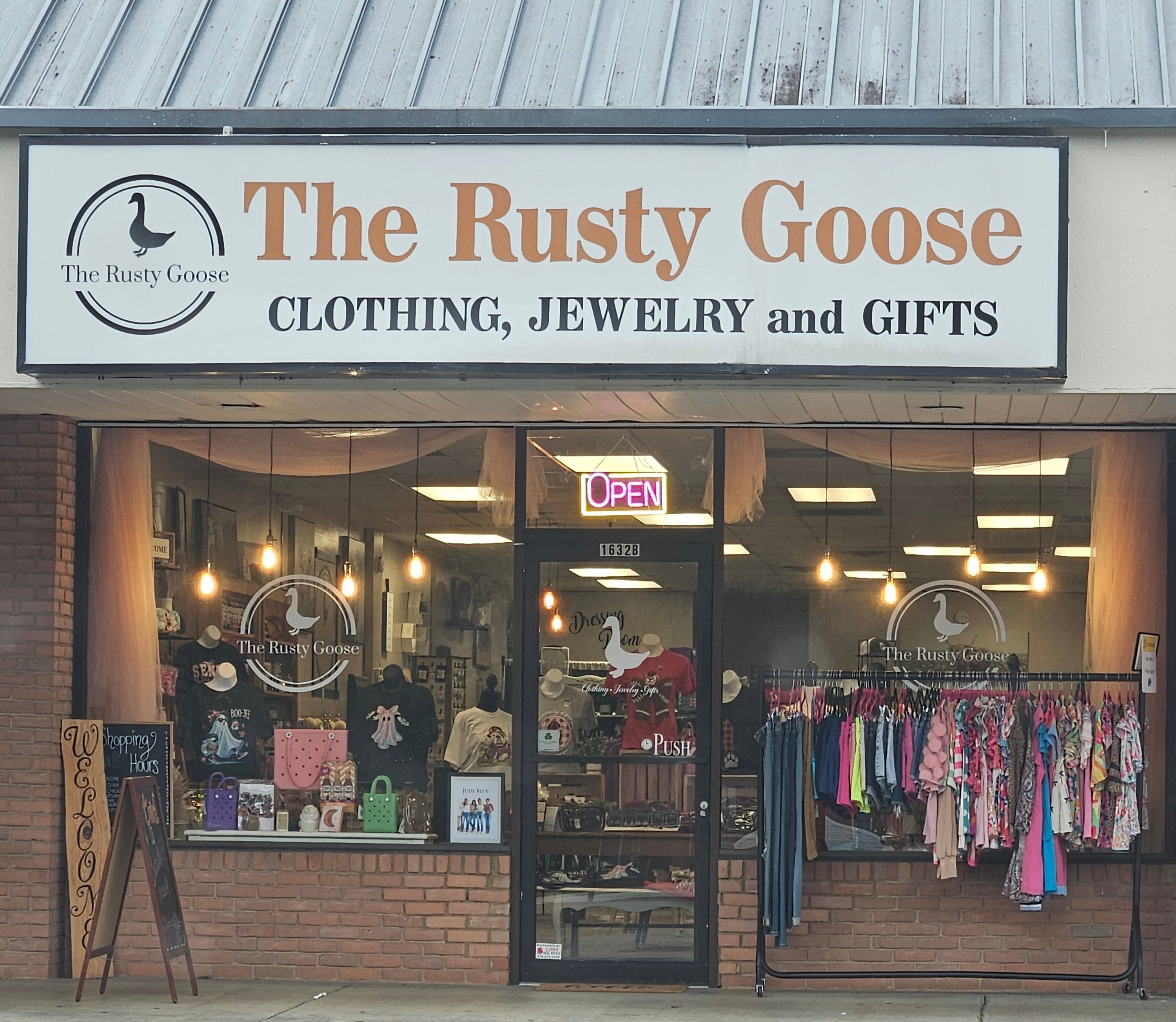Welcome to The Rusty Goose website. We are so glad to have you join us! The Goose Girls, who are the heart & soul of this small business, work hard to bring you all the trendy pieces while keeping it affordable. Find us online via all social media platforms OR at our storefront in Dublin, GA - next door to the famous Brian's Subs. See you soon!