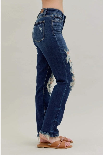 Judy Blue Mid Rise Heavy Destroy Straight Denim Jeans