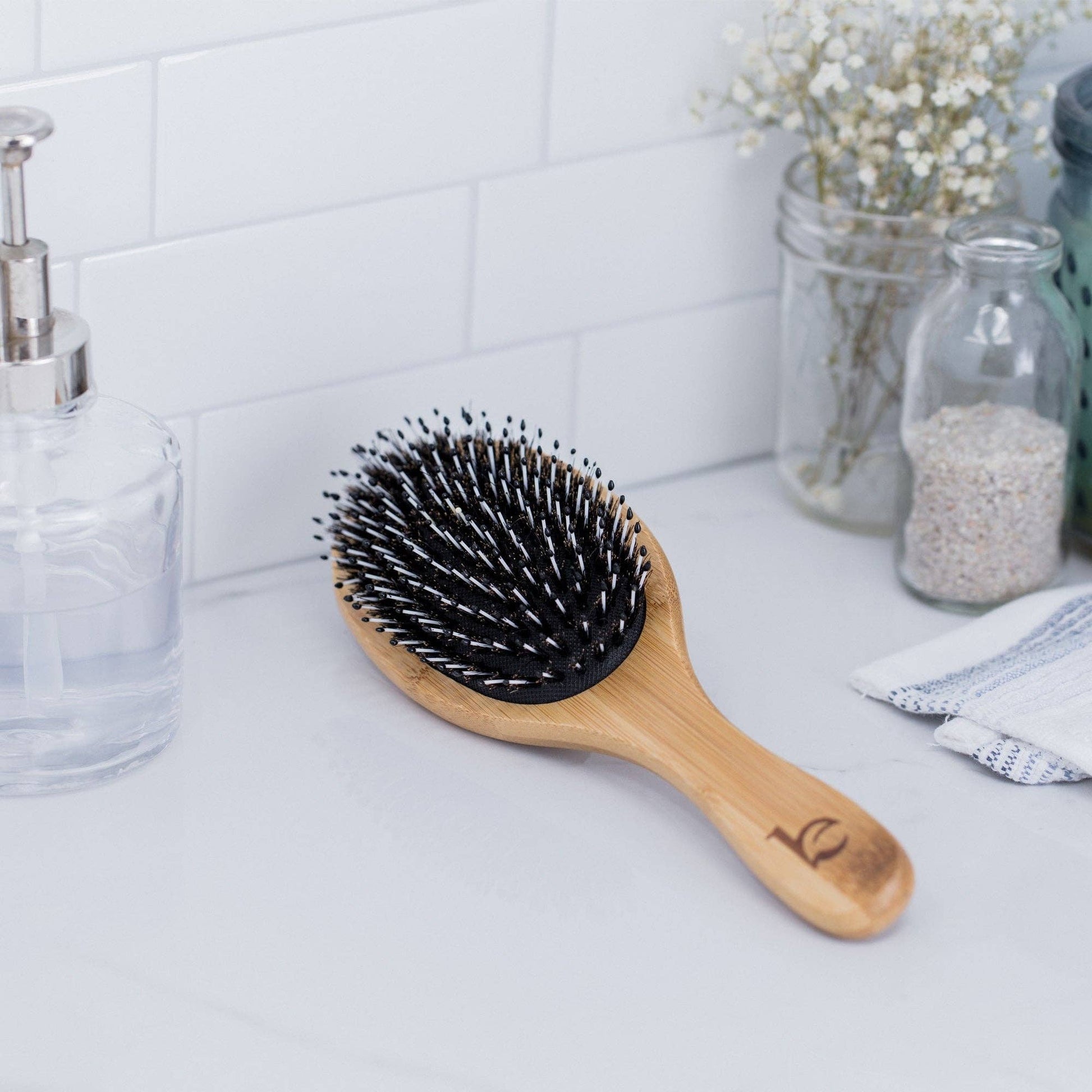 Boar Bristle Brush with Detangling Nylon Pins